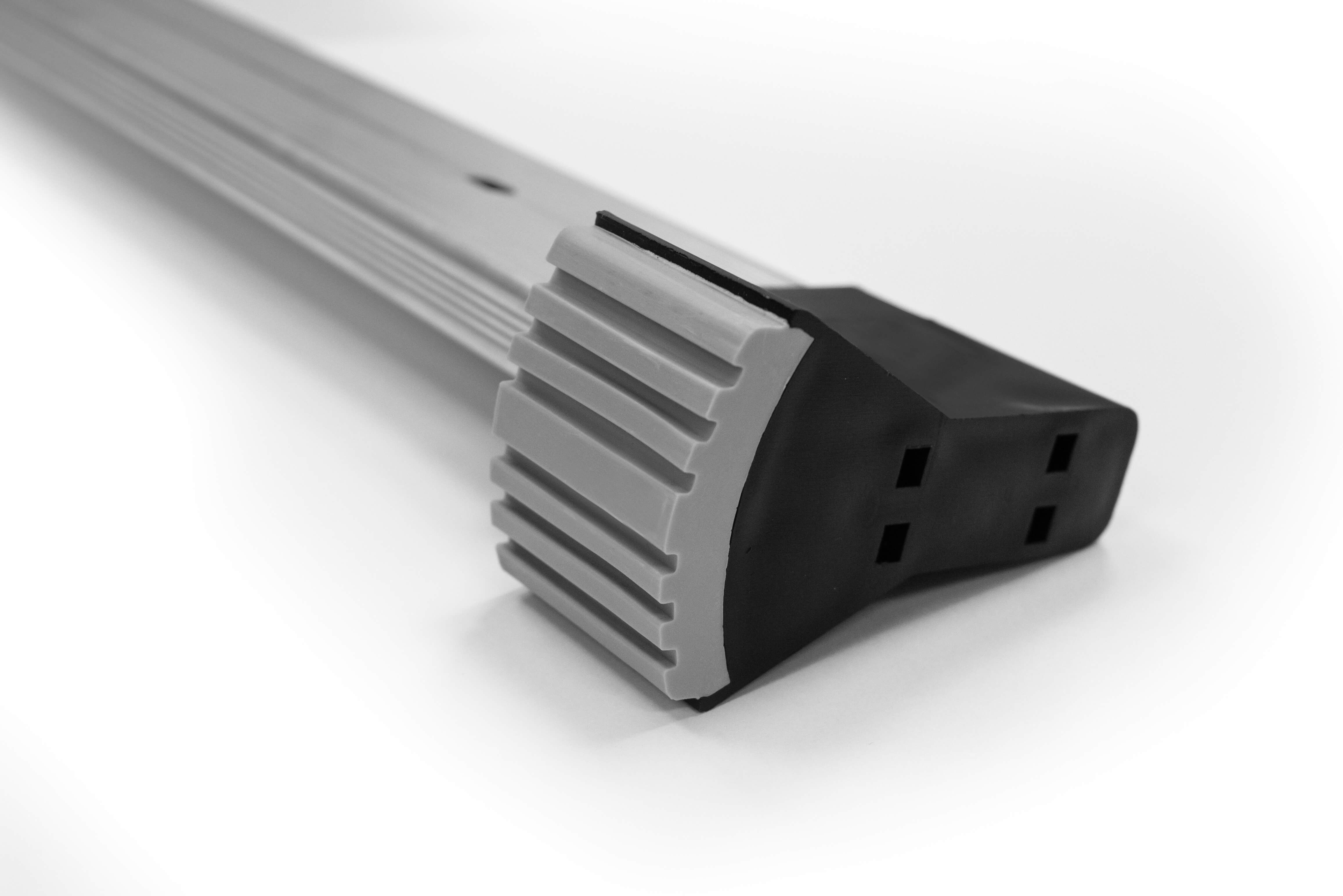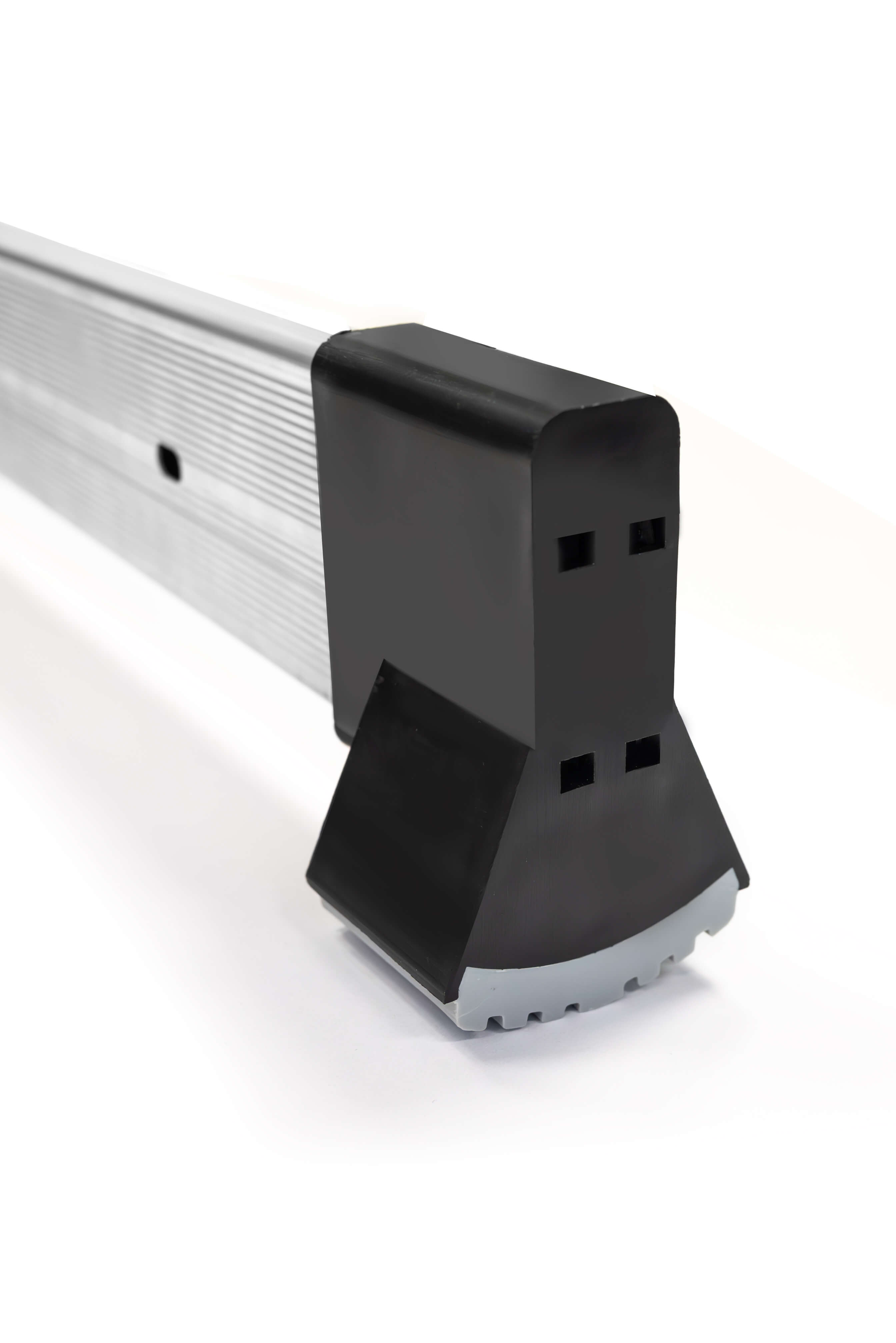 Elle est équipée de deux stabilisateurs avec des profils de section 62x17 mm, dotés de pieds antidérapants, ce qui minimise le risque de glissement de l'échelle. Ces pieds sont rivetés au profil du stabilisateur, et le stabilisateur est ensuite fixé à l'échelle avec des vis et des écrous auto-bloquants.